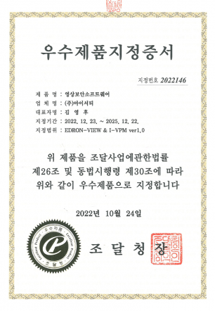 우수 제품 지정 증서