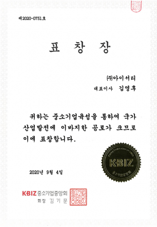 중소기업중앙회 표창장