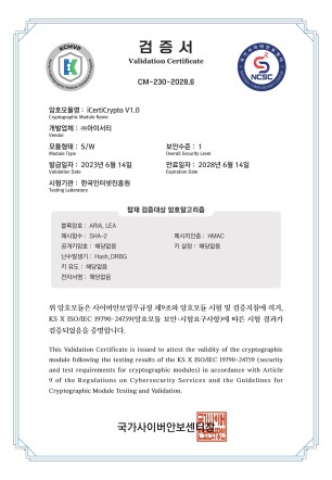 KCMVP 1등급 암호모듈 검증서