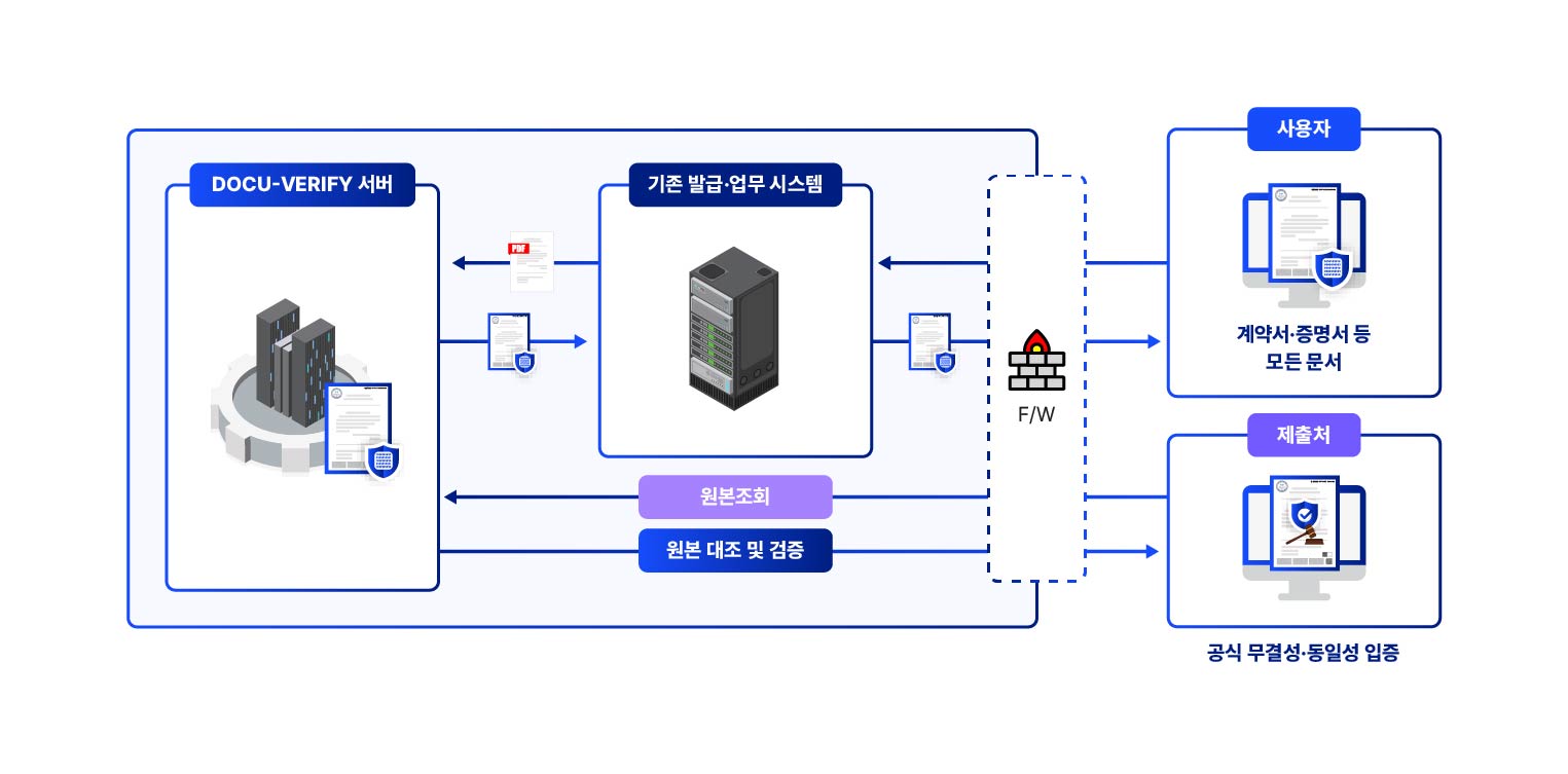 전자문서 발급 환경에서 안전하고 효율적인 문서 진위 검증 체계를 구축할 수 있습니다.